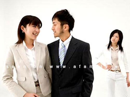 Vừa lúc ấy có tiếng gõ cửa, một cô gái bước vào, anh và cô gái cùng chết lặng kinh ngạc, trong khi chị vẫn tươi cười không tỏ vẻ gì là bất ngờ...