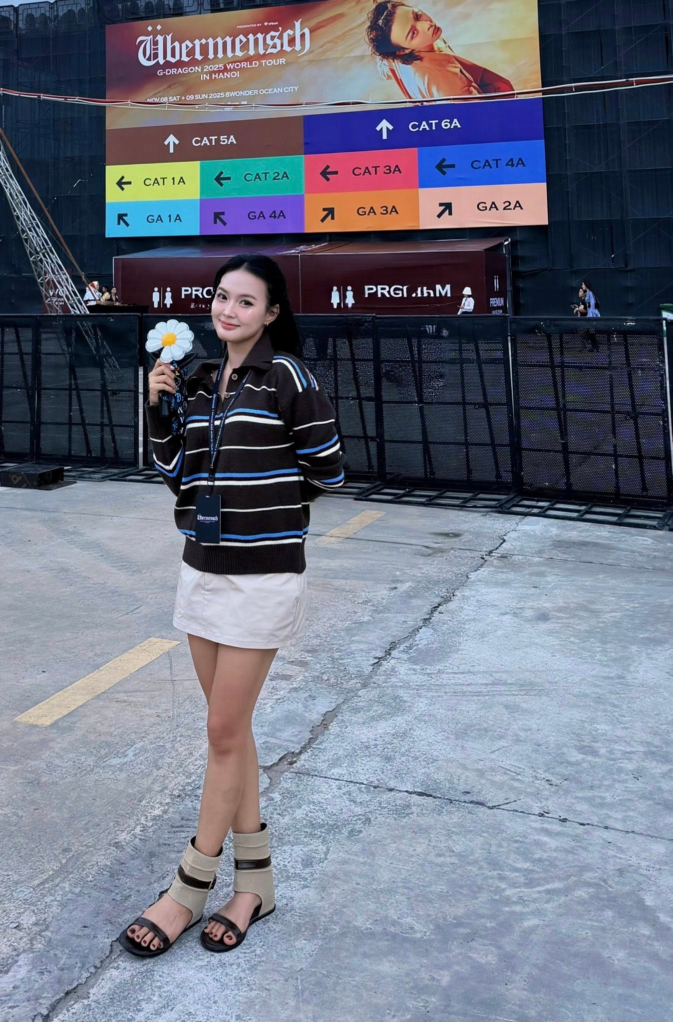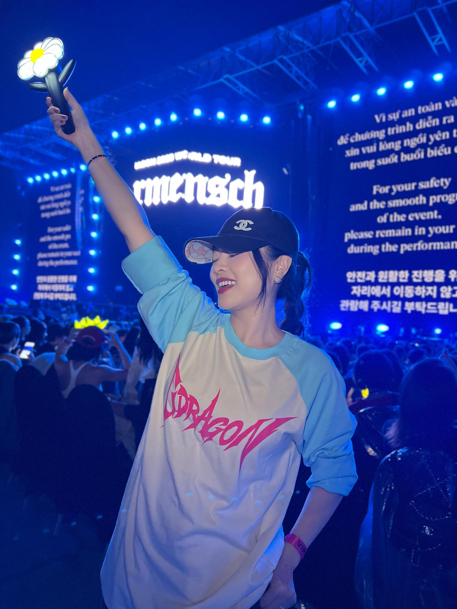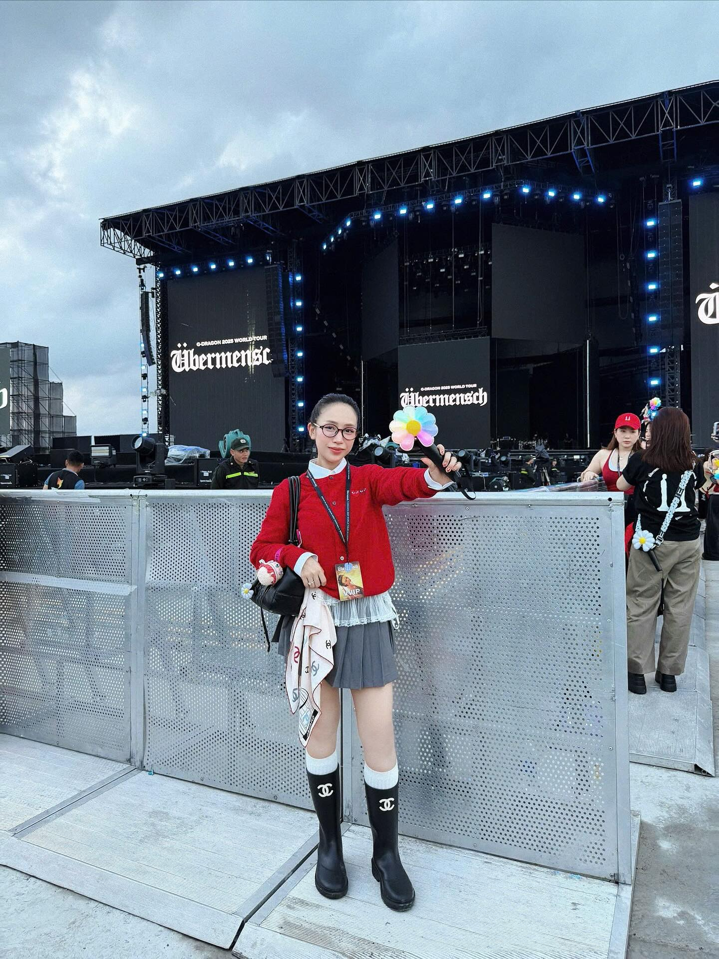 Hot mom Nguyễn Y Quyên cũng không bỏ lỡ dịp hiếm hoi được hòa mình vào bầu không khí cuồng nhiệt của concert G-Dragon. Nổi tiếng là mẹ bỉm với những tip chăm con cực khéo, lần này Y Quyên lại hóa thân thành cô nàng teen-girl cháy hết mình cùng idol. Là "mẹ bỉm vẫn phải chất", Y Quyên xuất hiện với outfit trẻ trung, năng động và thần thái rạng rỡ như gái đôi mươi.