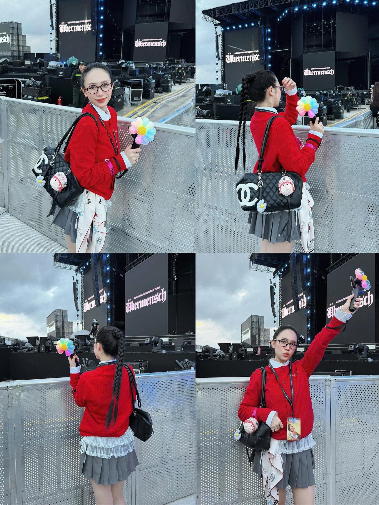 Lần xuất hiện tại concert lần này, mẹ bỉm chứng minh đẳng cấp "rich mom" khi dát nguyên set Chanel nổi bật từ trang phục đến phụ kiện, sang chảnh hết nấc. Vừa giữ trọn vibe fangirl cuồng nhiệt, vừa toát lên thần thái chuẩn ái nữ nhà đại gia, Joyce Phạm khiến dân mạng xuýt xoa: làm mẹ 4 con nhưng khí chất và độ chịu chơi thì vẫn đỉnh cao khó ai bì kịp.