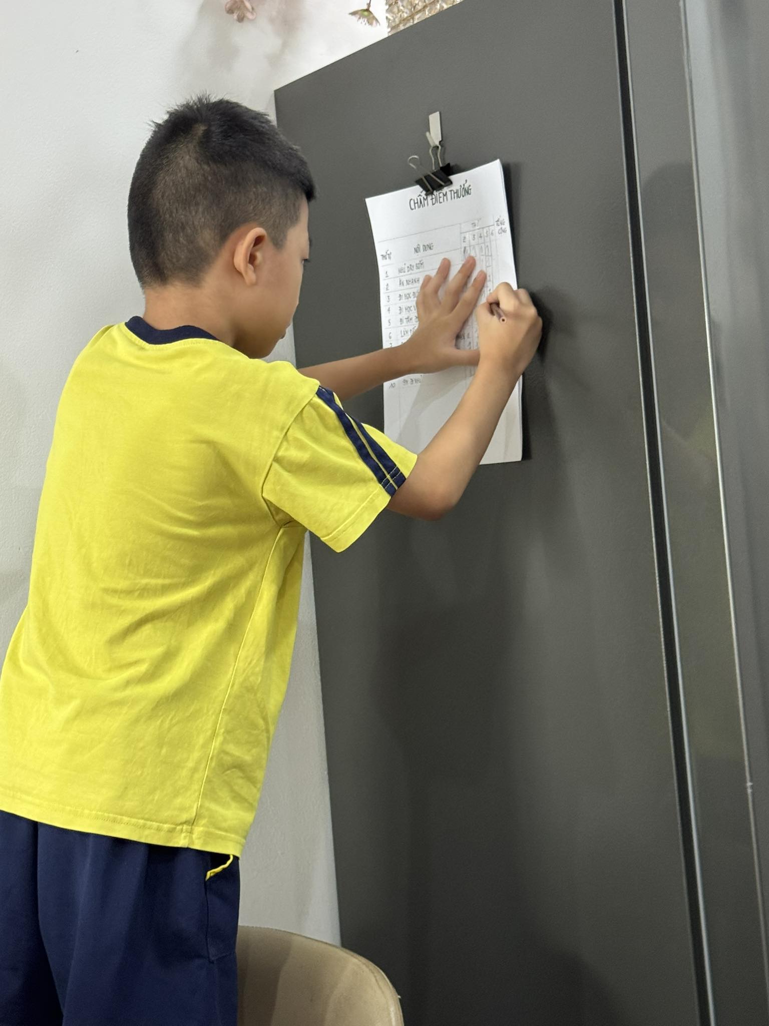 Điều thú vị ở gia đình Helen Nguyễn là mỗi tuần, một bạn nhỏ sẽ làm "đội trưởng". Bạn có nhiệm vụ nhắc nhở anh chị em thực hiện đúng giờ giấc, tự tick điểm và hỗ trợ mọi người. Cách làm này khiến mỗi bé cảm thấy được trao quyền, được tin tưởng và có trách nhiệm hơn, đồng thời nuôi dưỡng tinh thần lãnh đạo tích cực ngay từ sớm. "Khi con được dẫn dắt một cách mềm mỏng nhưng rõ ràng, con sẽ tự lập và tự tin hơn rất nhiều" - hotmom chia sẻ.
