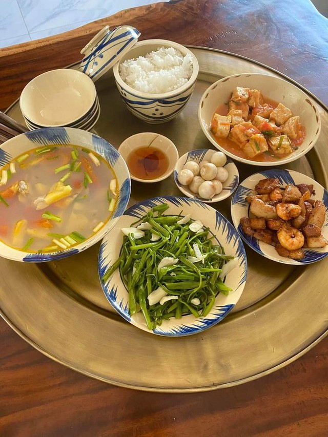 Khi bưng mâm cơm ra, mẹ chồng tôi đeo kính vào soi rất kỹ. Bà ngạc nhiên vì với 50k mà có cả món chiên, món sốt, món nộm và bát canh to vật vã.