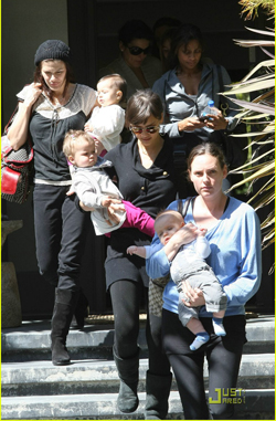 Nữ diễn viên 27 tuổi bế con ra khỏi lớp cùng với các bà mẹ khác.