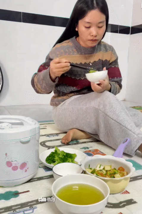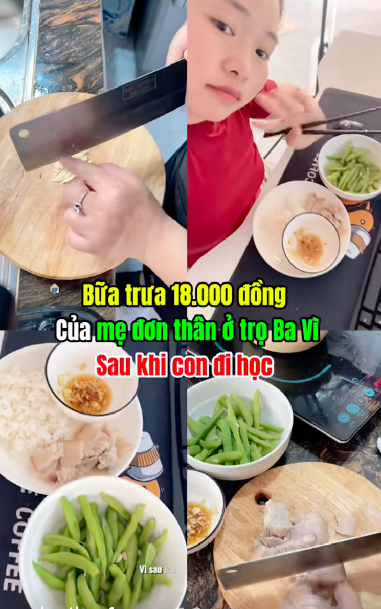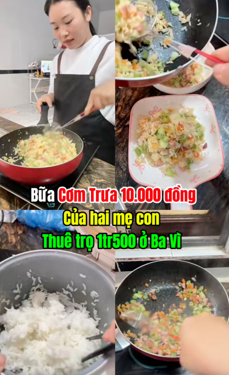 Con trai cô đang học mẫu giáo nên ban ngày bé ăn tại trường, buổi tối hai mẹ con mới cùng nhau ăn cơm ở phòng trọ. Chính vì vậy, bữa trưa thường chỉ có một mình, và đó cũng là lúc cô tiết kiệm nhiều nhất có thể.