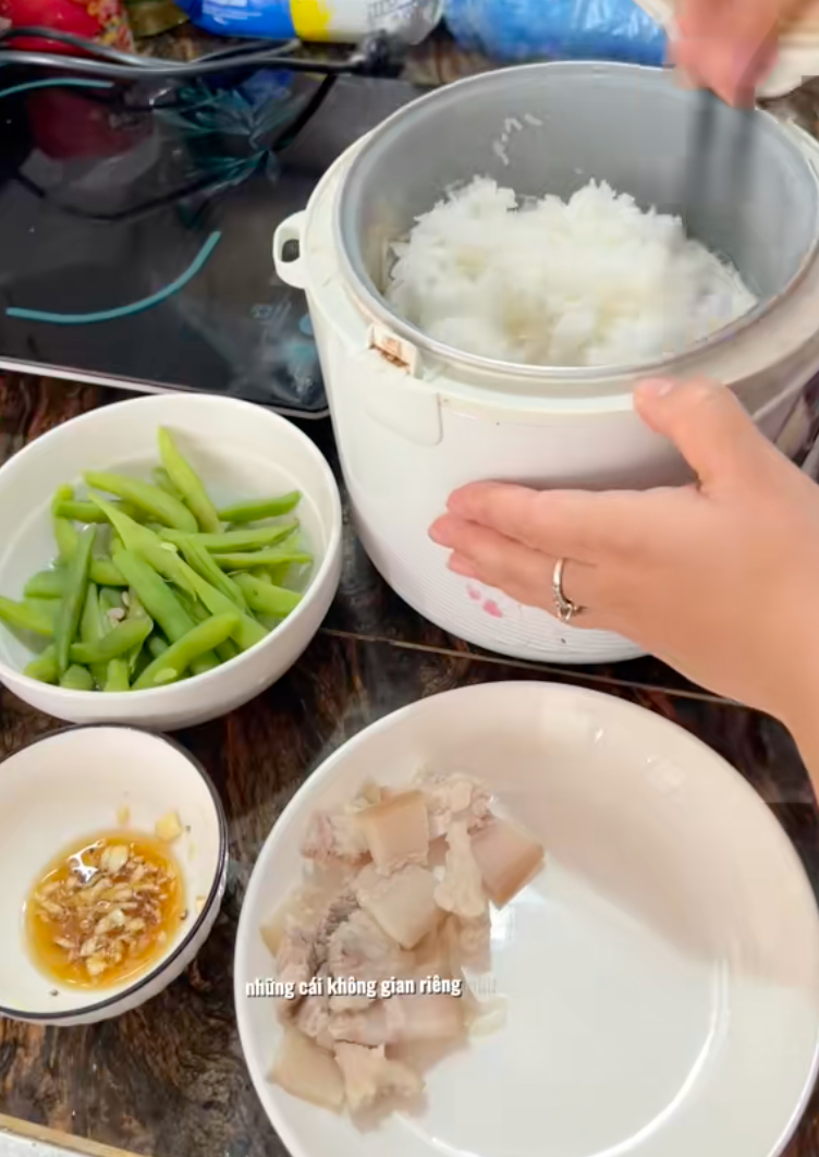 Những bữa cơm như vậy thường chỉ dành cho một mình cô. Khi ăn cùng con trai, cô vẫn cố gắng chuẩn bị đầy đủ hơn để đảm bảo dinh dưỡng cho bé.