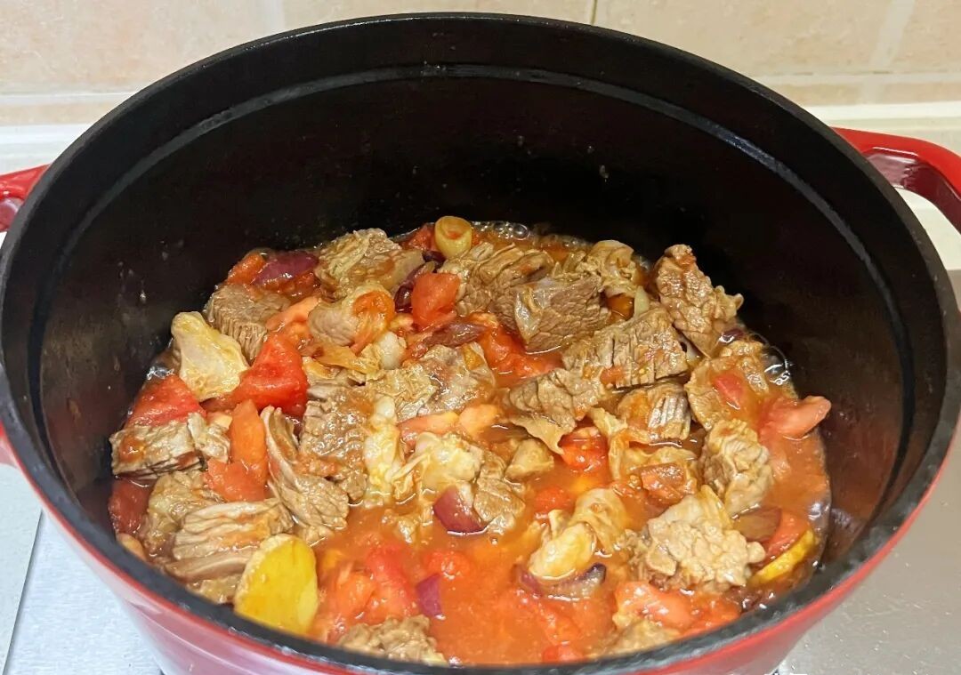 Bước 2: Cho các miếng thịt ức bò đã ngâm vào nồi, thêm nước vừa đủ và đun sôi để loại bỏ bọt bẩn. Vớt các miếng thịt ức bò đã chần ra, rửa sạch bằng nước ấm để loại bỏ bọt máu, sau đó để ráo. Đun sôi nước trong nồi, khía hình chữ thập trên bề mặt cà chua, chần chúng trong nước sôi. Sau đó vớt ra, bóc vỏ và thái nhỏ.