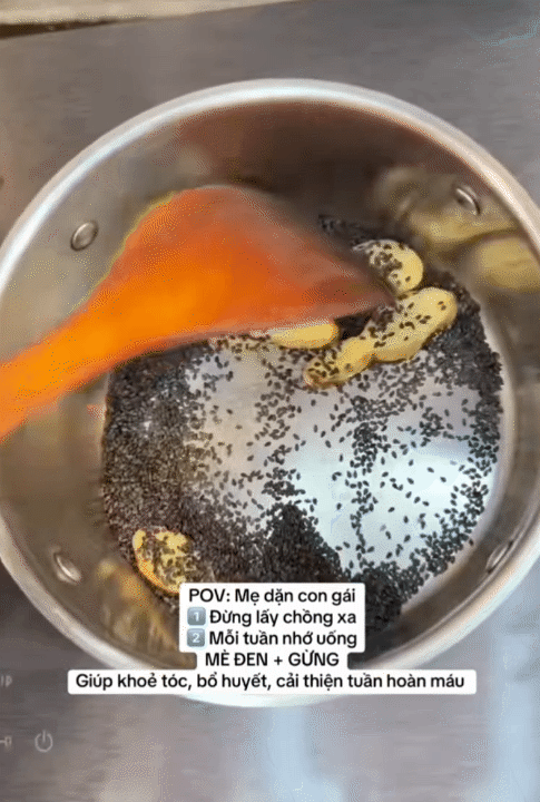 Không chỉ chăm sóc bên ngoài, mẹ U60 đặc biệt chú trọng chế độ ăn uống. Mè đen là thực phẩm được bà ưu tiên hàng đầu.