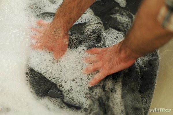 Bước 2. Sử dụng loại bột/nước giặt nhẹ, tránh các loại có chất tẩy cao. Dùng tay hòa tan bột giặt vào trong nước.