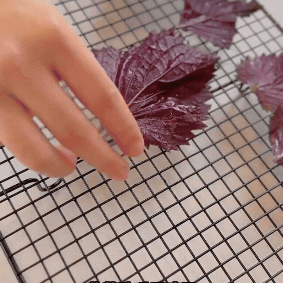 Phần lá tía tô vớt ra, trải phẳng phiu lên giấy nến hoặc giấy nướng bánh, đậy thêm một lớp giấy mỏng lên trên rồi cất vào hộp kín. Giờ thì "vũ khí bí mật" của gian bếp đã sẵn sàng! Với phần giấm tía tô, ngon nhất là đem rưới lên đĩa dưa chuột đập dập, trộn cùng chút rong biển tươi giòn sần sật, hoặc làm nước xốt dầu giấm trộn salad thì ăn hoài không biết ngán.
