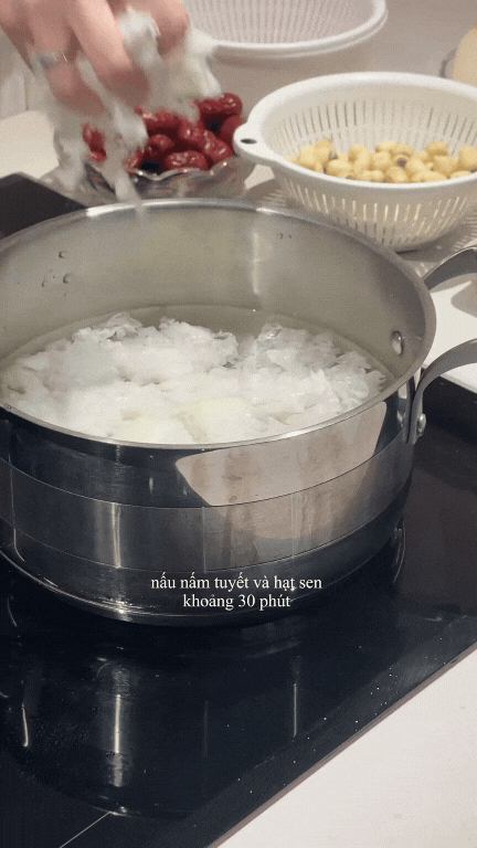 Ngoài công việc bận rộn, trên trang cá nhân của mình, Hà Trúc cũng thường xuyên chia sẻ các món ăn ngon nấu cho người thương và gia đình. Và để góp phần nuôi dưỡng làn da "tráng gương" đáng tiền ấy, một trong những bí quyết Hà Trúc sử dụng là ăn chè dưỡng nhan. Công thức chè dưỡng nhan này cũng được cô nàng chia sẻ trên kênh của mình.