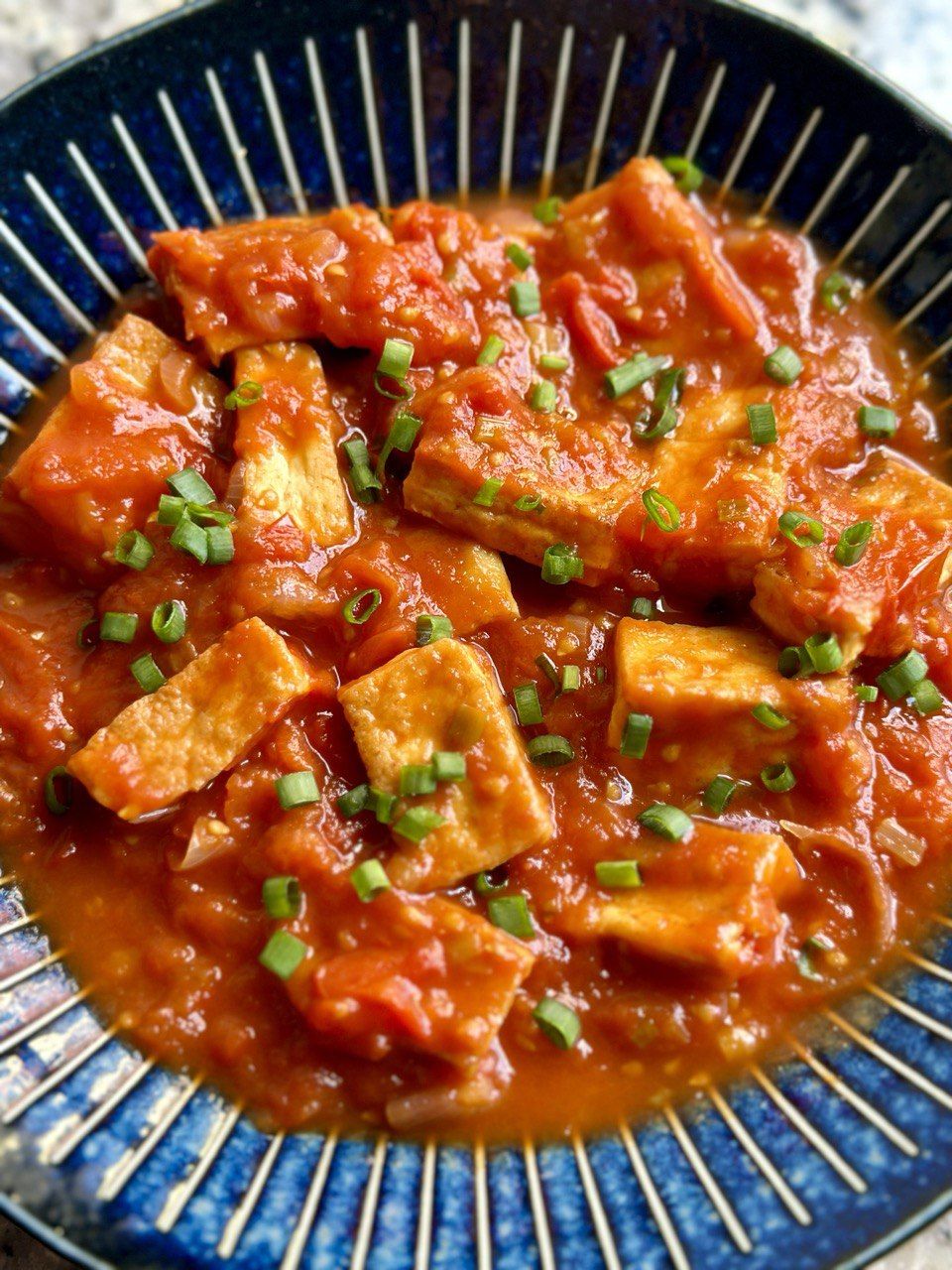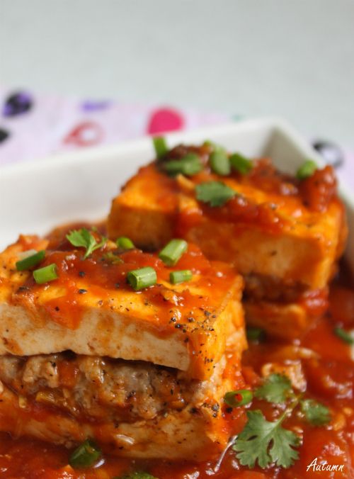 Mẹo nấu: Hãy để cà chua chín nhừ thành một hỗn hợp sệt, bao phủ đều lên từng miếng đậu.