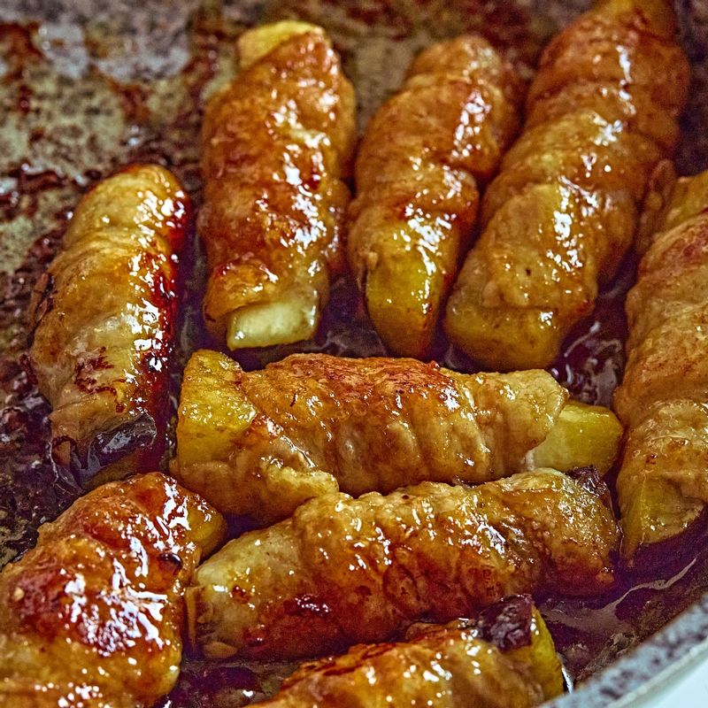 Đây là món "chả giò" độc đáo được biến tấu từ cà tím với thịt ba chỉ heo thái lát mỏng, với lớp vỏ vàng nâu và nước sốt đậm đà chắc chắn sẽ làm hài lòng mọi người.