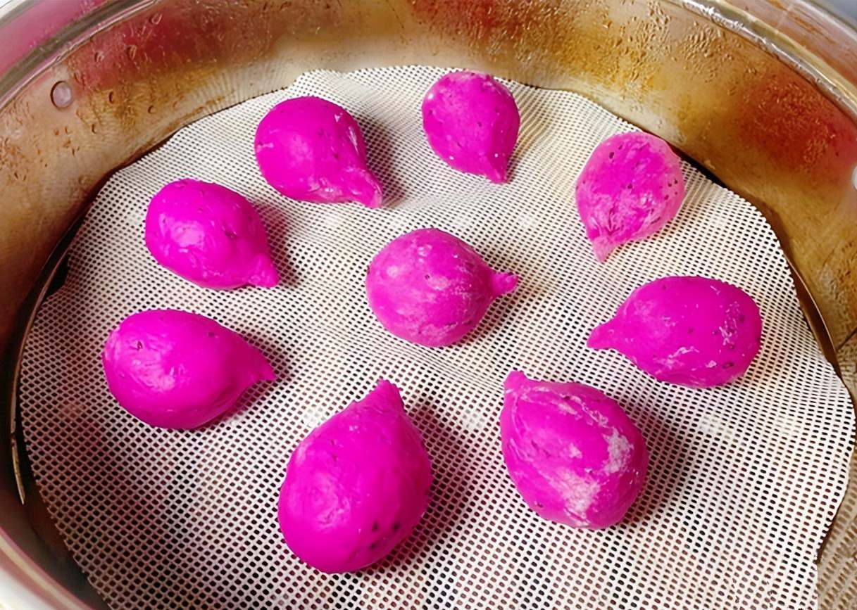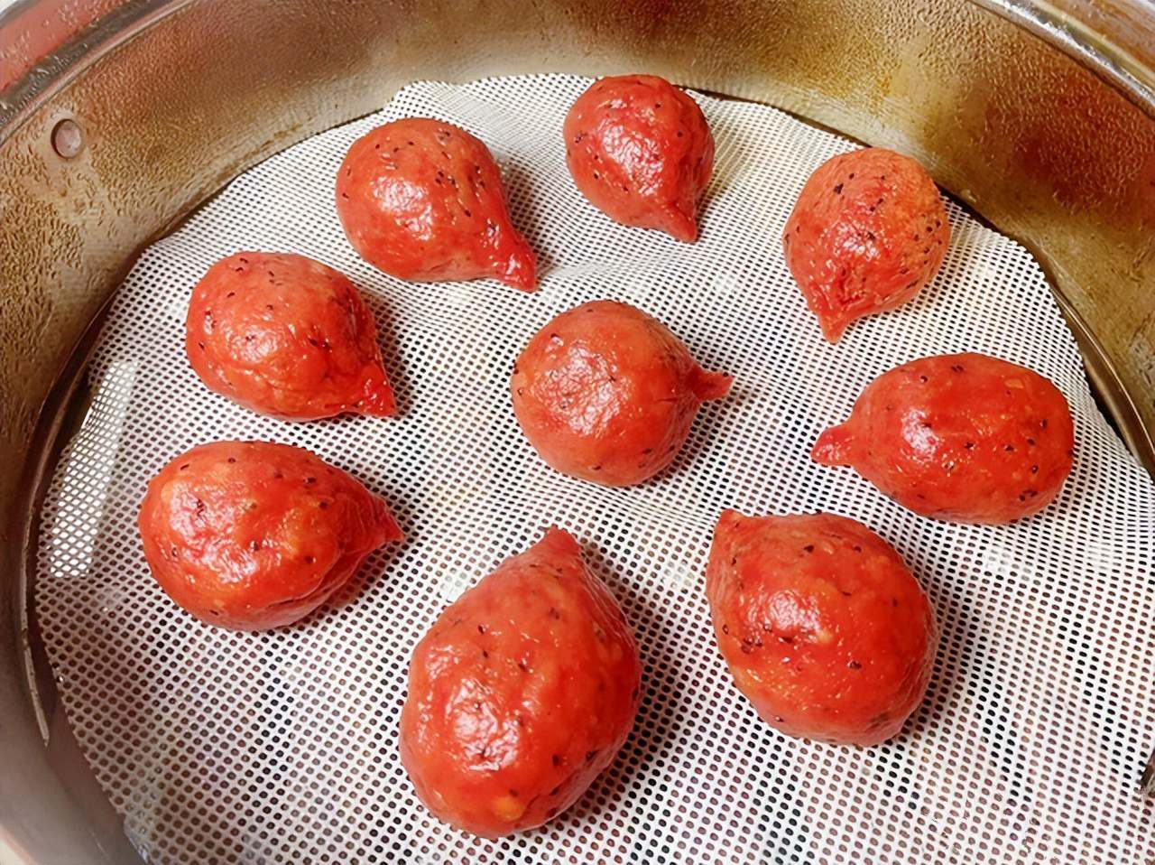 Xếp bánh lên giấy nến hoặc khăn hấp, mở nắp nhìn hơi nước bốc lên nghi ngút, mùi thơm lan ra khắp bếp. Chừng 10 – 12 phút là bánh chín, vỏ chuyển từ hồng nhạt sang hồng đậm rất bắt mắt. Lần đầu tôi làm, con tôi còn dụi mắt chưa tỉnh hẳn, vậy mà khi thấy mấy viên bánh hồng hồng đã sáng bừng cả mặt, ăn liền bốn viên rồi hồ hởi đi học, miệng còn lẩm bẩm: "Mai mẹ làm nữa nhé!".