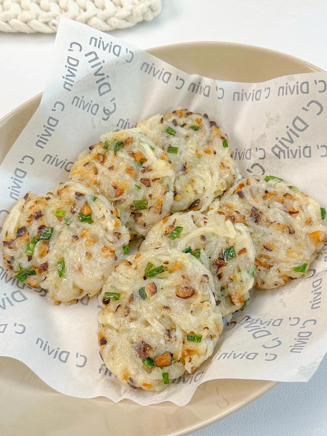 Công thức dưới đây cực kỳ đơn giản, không cần chuẩn bị quá nhiều nguyên liệu, thành phẩm lại đẹp mắt, dễ ăn, phù hợp cho bữa sáng, bữa xế hoặc làm món ăn vặt chiều đông. Chỉ với 180g củ cải trắng bào sợi, một ít tôm khô, nấm hương, bột và hành lá, bạn đã có thể chiên lên những chiếc bánh tròn xinh, vàng ươm, đưa cơm cũng được mà ăn chơi chấm xì dầu hay tương ớt cũng rất hợp.