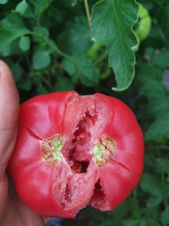Dù mùa nào cũng bán, nhưng cà chua mùa đông thường bị thu hoạch sớm rồi kích chín. Những quả đỏ nhưng cứng đanh, bổ ra còn lõi xanh, ít nước, vị chua đậm là dấu hiệu chưa chín tự nhiên.