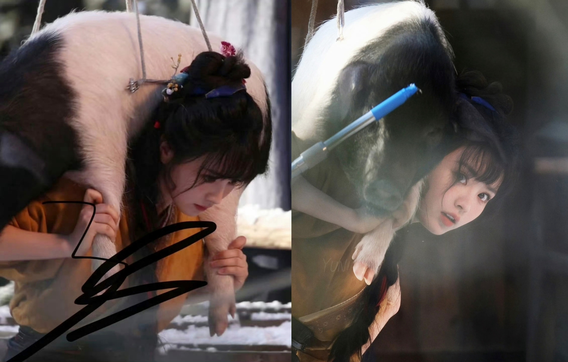 Điền Hi Vi cõng lợn trong phim Trục Ngọc