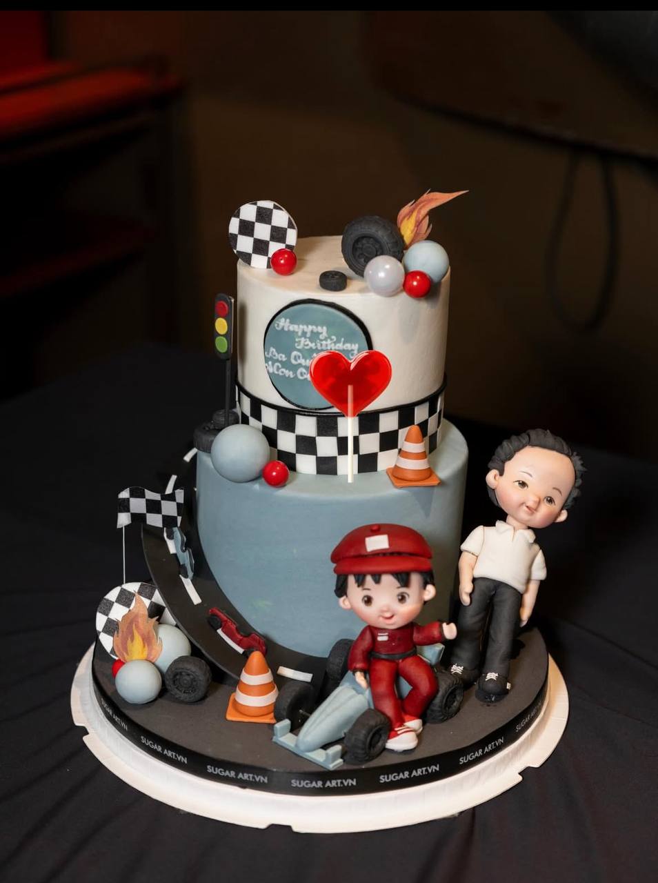 Trên chiếc bánh kem có thông tin về 2 nhân vật chính là "Ba Quốc Thái và Con Quốc V"