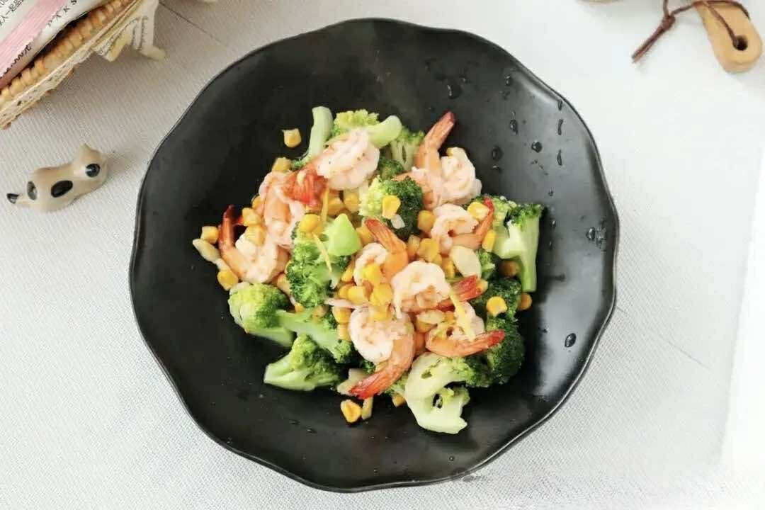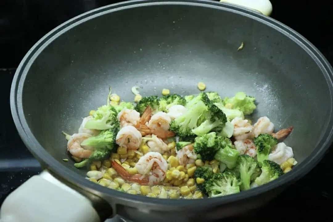 Một món xào nhanh và đơn giản nhưng ngon miệng và tốt cho sức khỏe. Tôm và bông cải xanh rất thích hợp cho trẻ đang lớn; ngon và bổ dưỡng - một món ăn thực sự hoàn hảo. Thêm hạt ngô vào sẽ làm tăng thêm tầng hương hương vị ngọt ngào cho món ăn. Chất cellulose có trong ngô là một loại carbohydrate không được cơ thể hấp thụ, có thể làm giảm nồng độ các chất còn sót lại trong ruột người, giảm sự tích tụ các chất gây thối rữa tiết ra độc tố trong ruột, từ đó làm giảm nguy cơ mắc các bệnh về đường ruột.