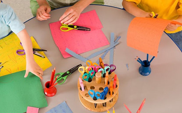 Ở trường mẫu giáo, các bé thường được học cách cầm kéo cắt giấy, học cách sử dụng bút chì, bút lông và cả keo dán nữa.