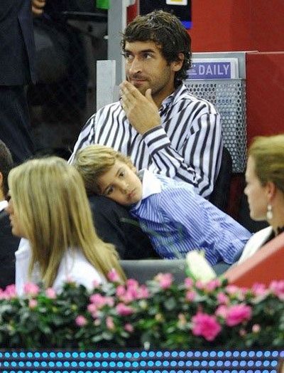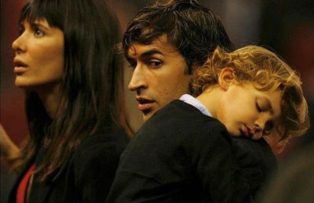 | Raul sẵn sàng làm gối tựa cho các cậu con trai mọi lúc, mọi nơi. Tiền đạo Real có 4 cậu nhóc và một bé gái. |