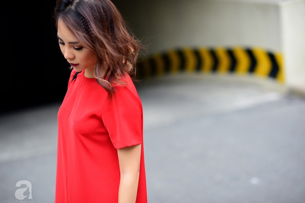 Chọn sắc đỏ tươi cho ngày cuối tuần dạo phố, quý cô làm sáng bừng cả một góc phố đầu đông.