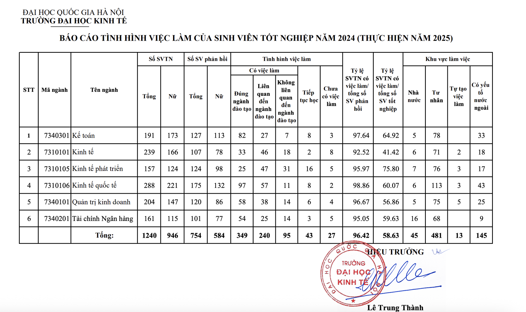 Trường Đại học Kinh tế (Đại học Quốc gia Hà Nội) công bố báo cáo tình hình việc làm của sinh viên tốt nghiệp năm 2024
