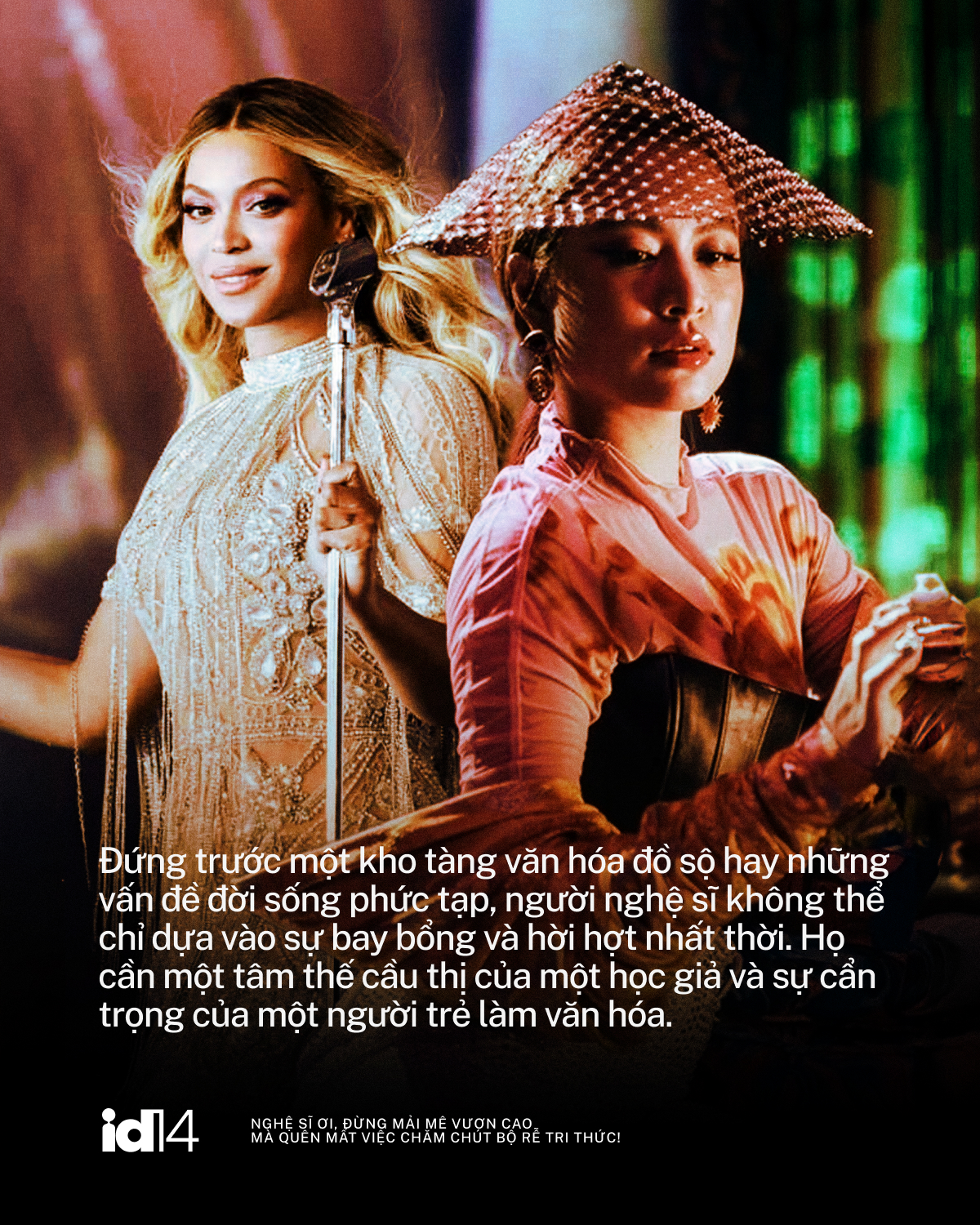 Những thành công mang tính biểu tượng của Hoàng Thùy Linh trong việc "phục dựng" âm hưởng dân gian, hay tầm ảnh hưởng mang tính thời đại của Beyoncé khi đòi lại vị thế cho di sản người da màu, đã gửi đi một thông điệp: Cảm hứng có thể là đôi cánh đưa bạn bay xa, nhưng tri thức mới là thứ giữ bạn lại bền lâu trong trái tim và sự tôn trọng của khán giả. Đứng trước một kho tàng văn hóa đồ sộ hay những vấn đề đời sống phức tạp, người nghệ sĩ không thể chỉ dựa vào sự bay bổng và hời hợt nhất thời. Họ cần một tâm thế cầu thị của một học giả và sự cẩn trọng của một người trẻ làm văn hóa.