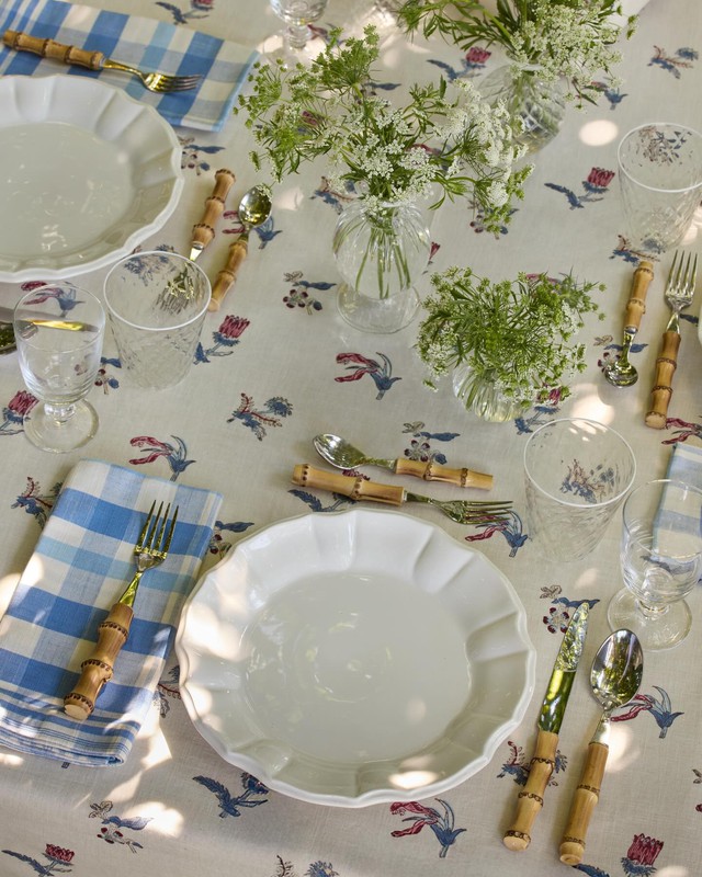 Lớp lang của sự xa xỉ tiếp tục được bóc tách qua những chi tiết cá nhân hóa đến mức cực đoan. Những chiếc khăn ăn trên bàn tiệc của Aerin không bao giờ là lanh công nghiệp. Chúng là những kiệt tác được dệt tay từ các xưởng thủ công trăm tuổi ẩn mình ở Ý hoặc Pháp.