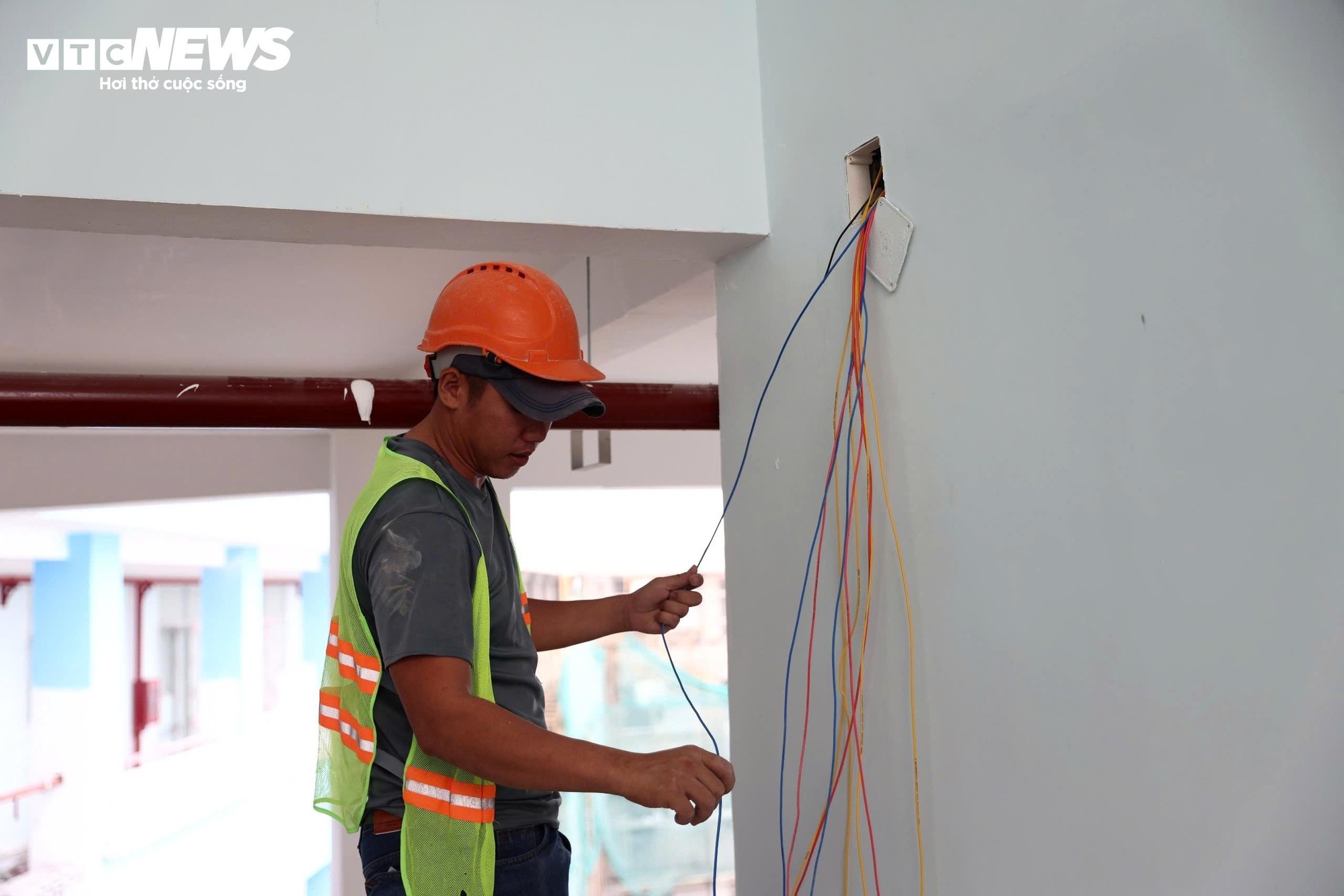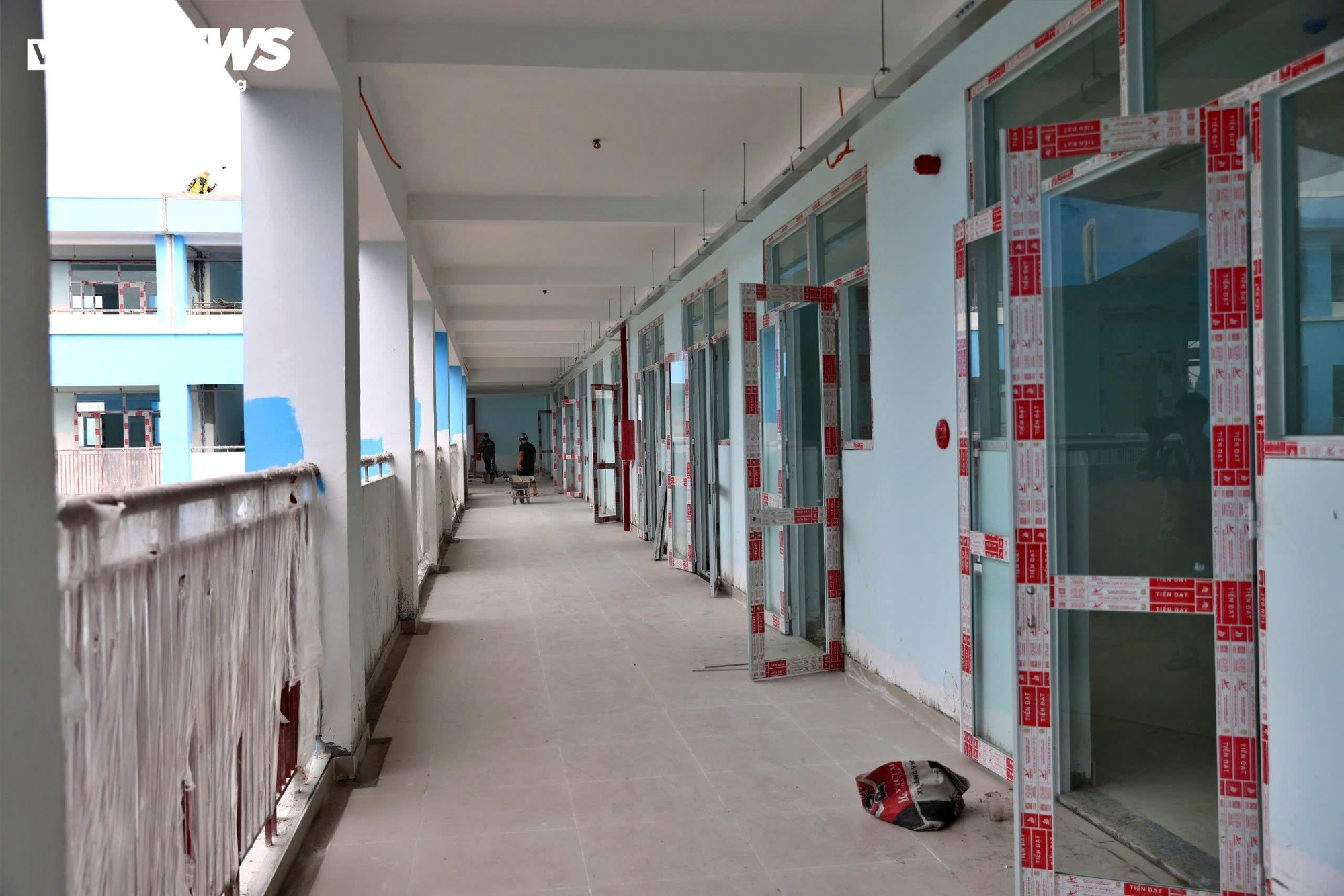 Hiện nay, nhiều hạng mục hoàn thiện như sơn tường, lát gạch hành lang, lắp đặt thiết bị điện và các công trình phụ trợ đang được triển khai đồng loạt. Một số dãy hành lang ở các tầng đã được vệ sinh, hoàn thiện sau khi lát gạch, tạo diện mạo khang trang cho công trình.