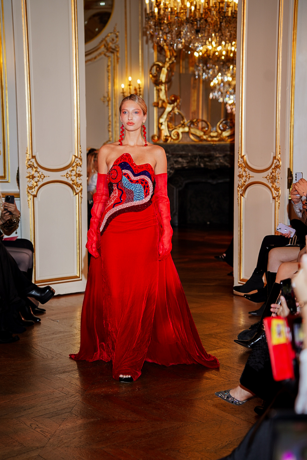 Sau bao ngày ấp ủ thì cuối cùng NTK Hà Linh Thư đã có show diễn cá nhân tại khách sạn hơn 160 tuổi Hotel Le Marois (Paris, Pháp) để giới thiệu bộ sưu tập Xuân Hè 2026 với chủ đề ‘Stairway to Heaven’. 30 thiết kế mang đậm hơi thở văn hóa phương Đông được trình làng, trong đó Tú Anh - Quán quân The Face 2022 là model Việt duy nhất của show. Cô đảm nhận vị trí vedette với bộ váy cưới độc đáo như biểu tượng cho tinh thần Rock mà Hà Linh Thư gửi gắm trong bộ sưu tập mới.