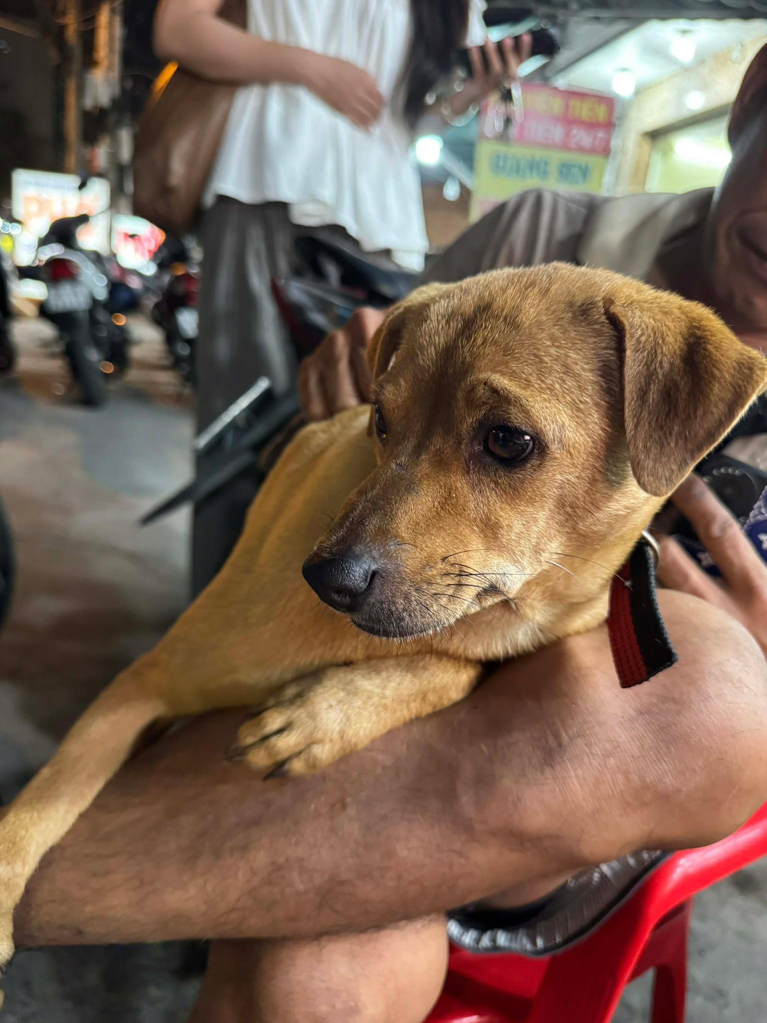 Anh cũng cho biết trong thời gian Nọng đi lạc, chú chó may mắn được một quán cháo lòng cưu mang. Ban đầu, chủ quán chưa muốn cho anh nhận lại chú cún. Tuy nhiên sau khi đọc được tờ rơi tìm chó và hiểu rõ hoàn cảnh của anh, họ đã thay đổi quyết định. "Suốt 1 tháng đi lạc, chủ quán có lo chi phí thuốc men để điều trị 4 cái chân đau cho Nọng, rồi tiêm phòng nữa nên lúc nhận lại tôi có trả lại chi phí thuốc men đó cho họ chứ người ta không đòi hỏi thêm gì cả".