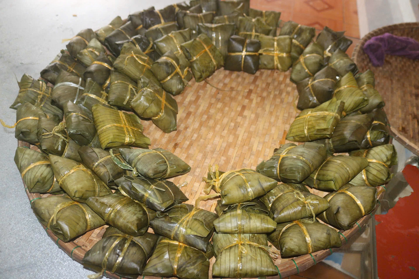 Từ chiều 20 - 22/11, bà con đã chuẩn bị gói và nấu được khoảng 1.000 chiếc bánh chưng.
