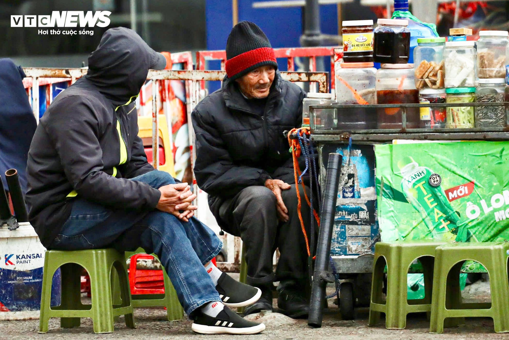 Cái rét đến nhanh trong ngày đầu năm khiến nhiều người chưa kịp chuẩn bị đầy đủ đồ ấm, đặc biệt là người lao động bắt đầu công việc từ tờ mờ sáng.