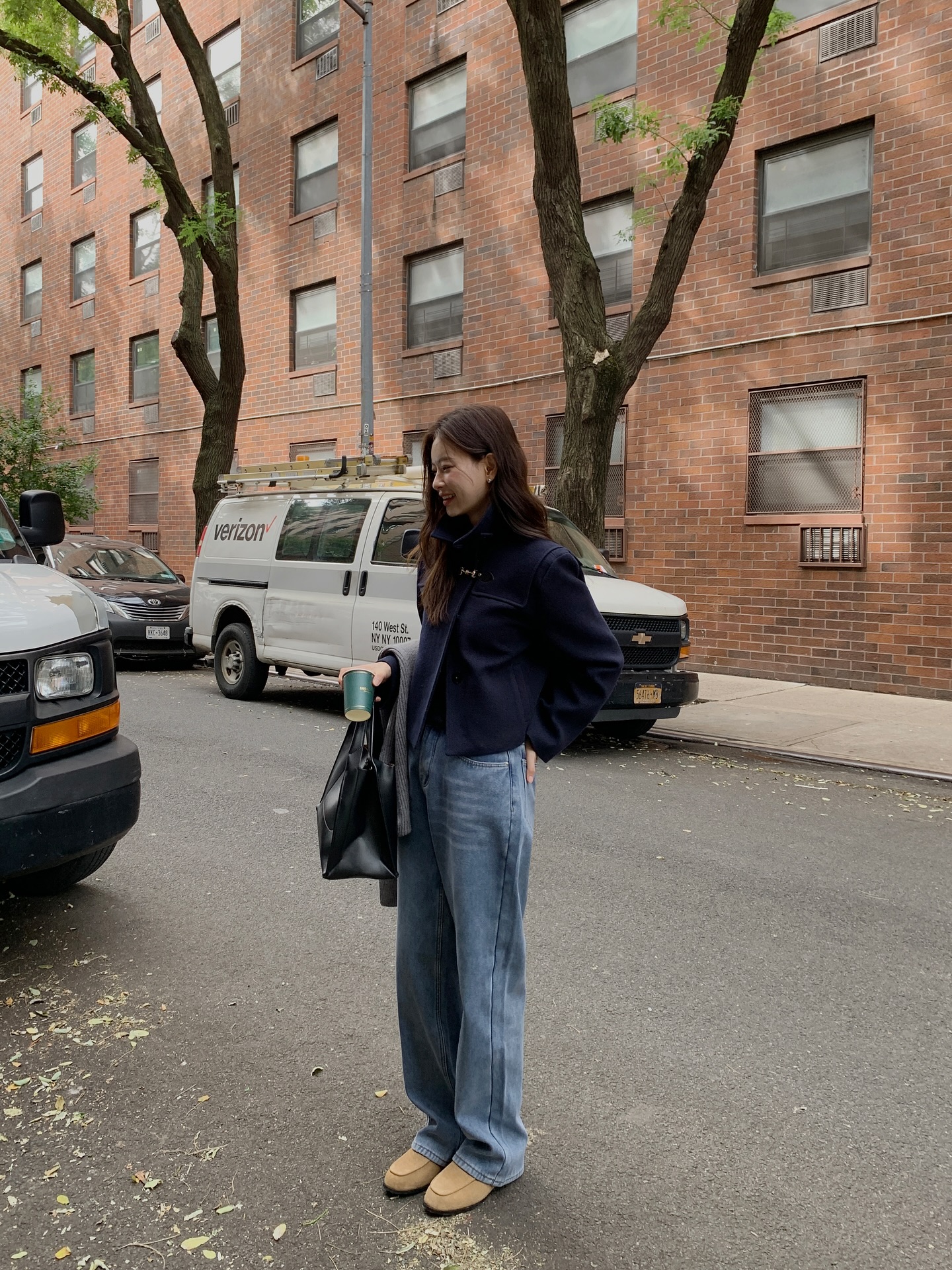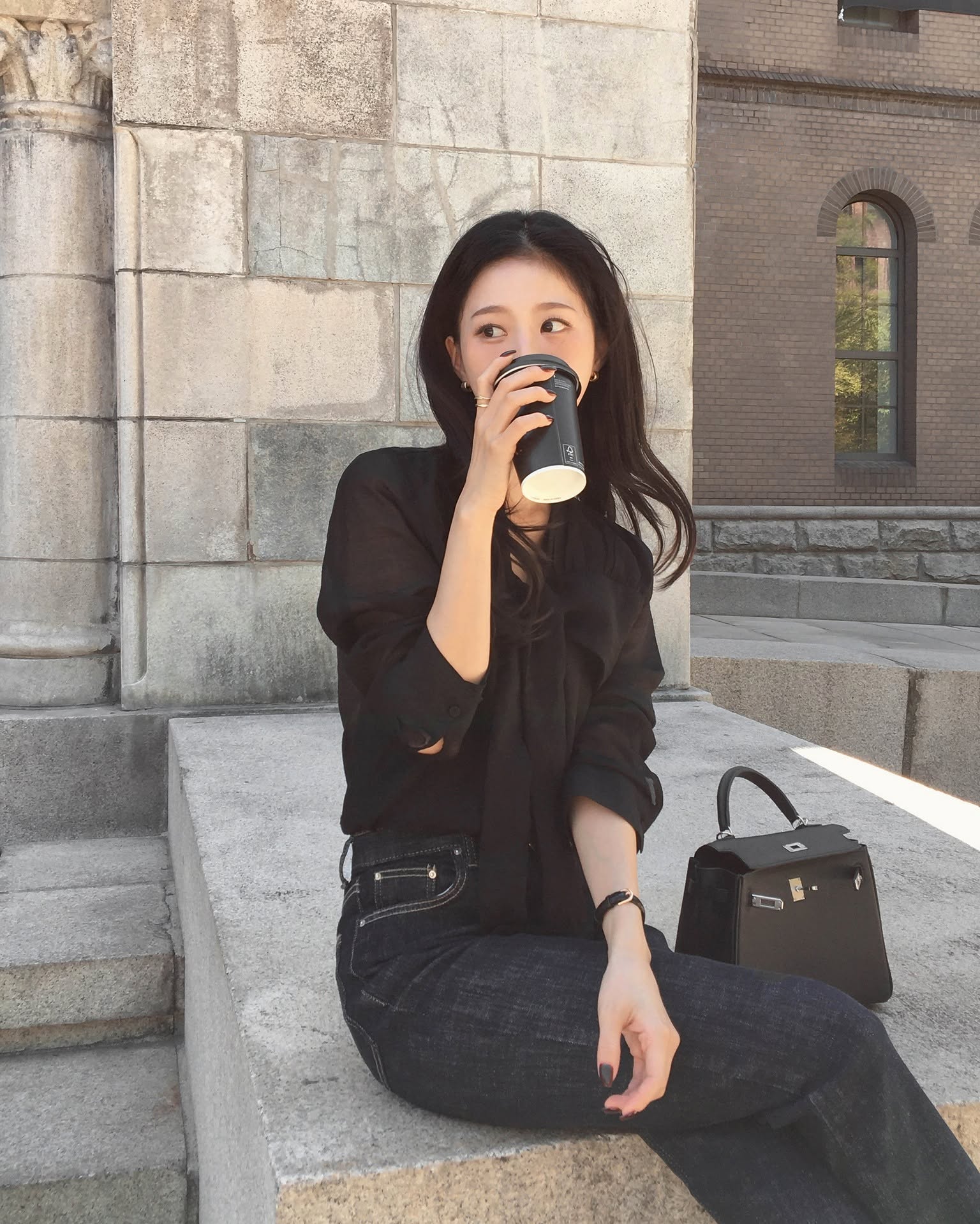 Điểm hay của denim nằm ở chất liệu và màu sắc có tính ứng dụng cao, giúp làm mềm đi cảm giác nghiêm túc của trang phục tối màu. Chị em có thể chọn quần jeans ống đứng, ống suông hoặc chân váy denim chữ A để tạo hiệu ứng gọn gàng, hiện đại. Nếu muốn tổng thể trông sang hơn, hãy ưu tiên denim màu xanh đậm, dáng đứng form và hạn chế chi tiết rách quá nhiều. Chỉ cần thêm một đôi giày loafer, ankle boots hoặc sneaker trắng là outfit đã đủ cuốn hút cho cả đi làm lẫn dạo phố.