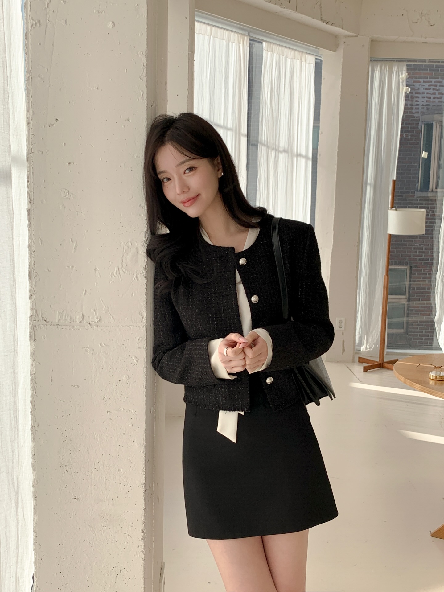 Trang phục dáng ngắn có khả năng "hack tuổi" nhờ tạo tỷ lệ cơ thể cân đối, giúp đôi chân trông dài hơn. Với những chị em không tự tin diện đồ quá ngắn, có thể chọn váy trên gối một chút hoặc áo lửng vừa chạm cạp quần. Khi diện đồ tối màu dáng ngắn, hãy ưu tiên thiết kế tối giản, ít chi tiết để giữ được vẻ sang trọng. Kết hợp cùng giày cao gót, boots cổ ngắn hoặc sandal quai mảnh sẽ giúp outfit trông tinh tế mà không bị quá trẻ con.