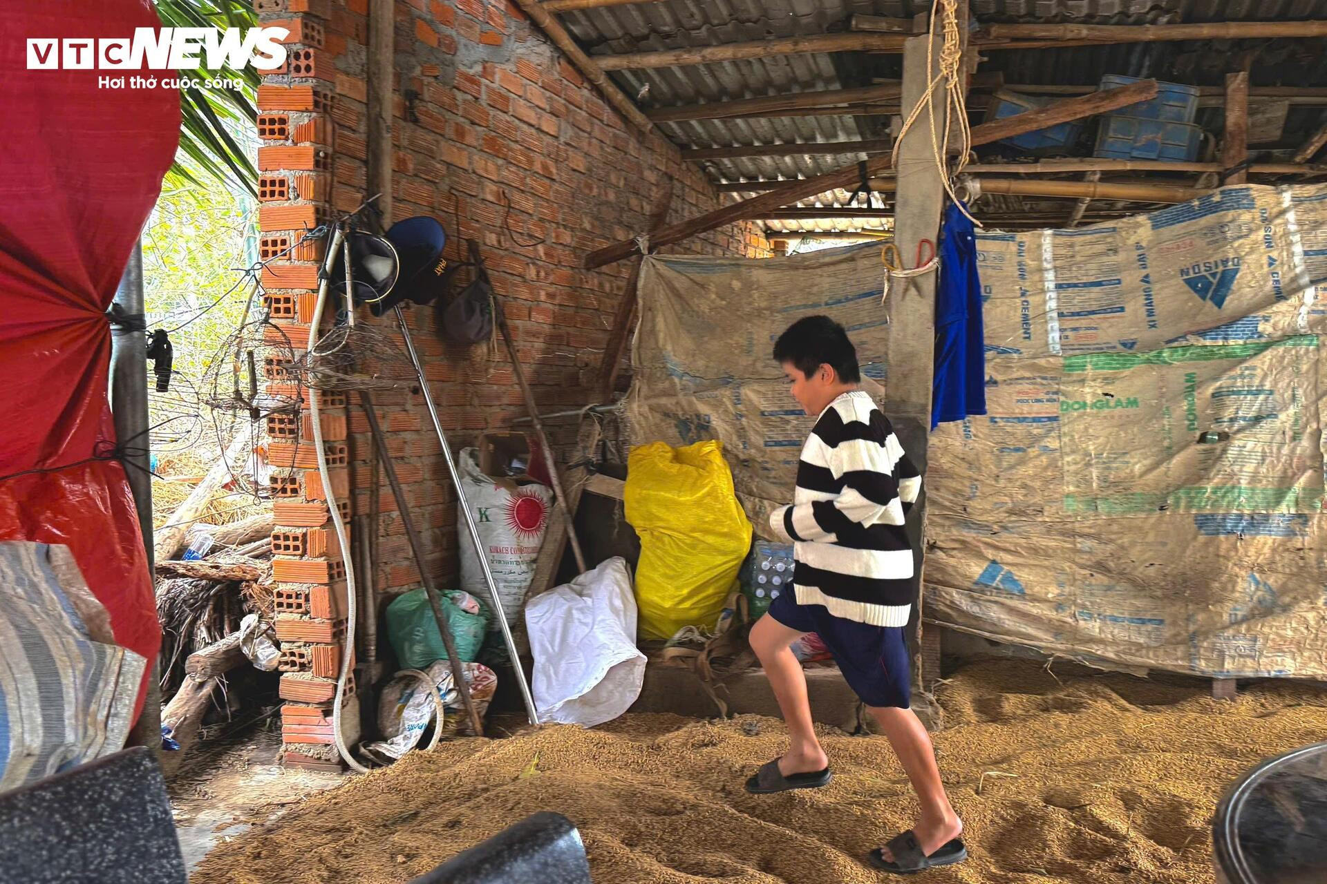 Bên ngoài, những người họ hàng, xóm giềng đang phụ giúp chị Ngân dọn dẹp, lau chùi, sắp xếp lại nhà cửa. Vài bao lúa còn sót lại được đổ ra sân phơi dù mầm đã lên cao, với hy vọng vớt vát lại chút ít thức ăn cho gà, vịt.