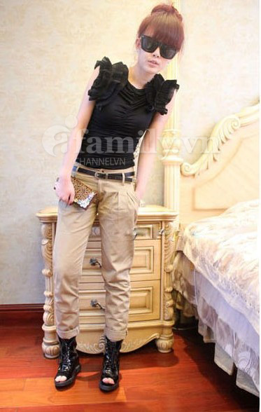 chân váy midi hay quần kaki xắn ống.