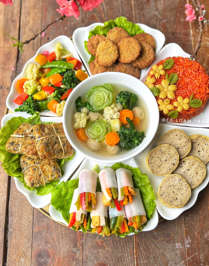 Gợi ý mâm cỗ chay cúng mùng 1 tháng Chạp. (Ảnh: Loan Trần)