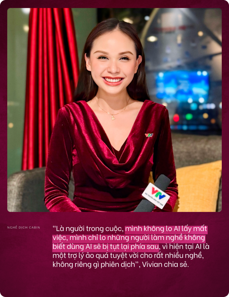 Là người trong cuộc, mình không lo AI lấy mất việc, mình chỉ lo những người làm nghề không biết dùng AI sẽ bị tụt lại phía sau, vì hiện tại AI là một trợ lý ảo quá tuyệt vời cho rất nhiều nghề, không riêng gì phiên dịch”, Vivian chia sẻ.