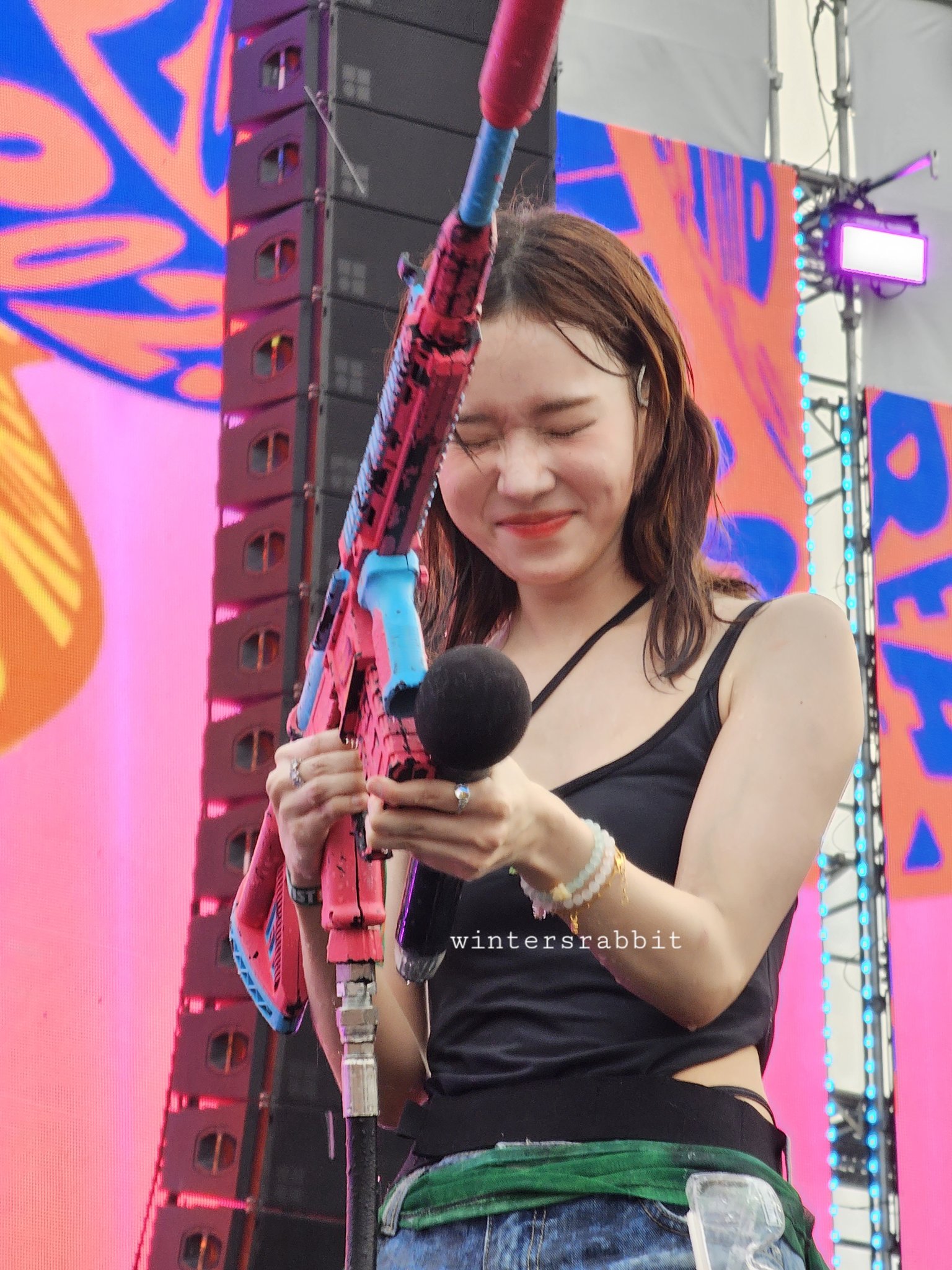 Nữ rapper bị nước bắn vào mặt, chật vật biểu diễn trên sân khấu Waterbomb