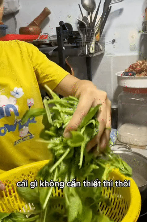 "Có hôm tôi mua 25k khoai sọ với 50k sườn, mình nấu canh ăn hai bữa. Thêm rau muống xào và ít đồ ăn còn lại từ hôm trước là đủ. Cơm nhà đơn giản vậy thôi, nhưng ba mẹ con ngồi quây quần, vừa ăn vừa kể chuyện, là thấy ấm lòng rồi" - chị Thảo tâm sự.