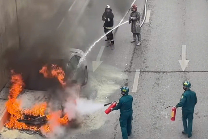 Ô tô Audi bốc cháy ngùn ngụt ở hầm chui Hà Nội