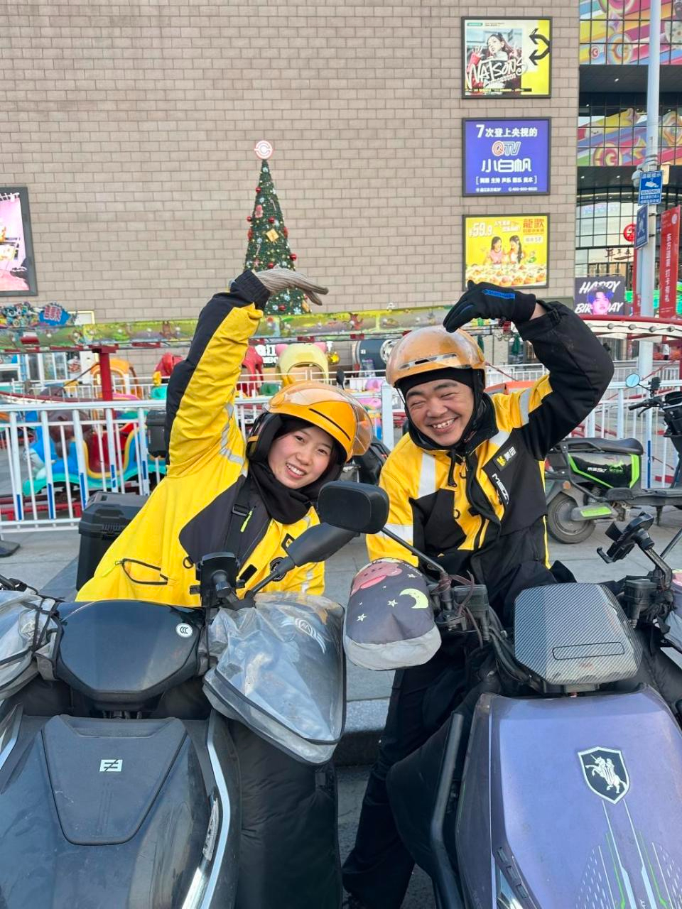 Được biết cặp đôi là Tôn Hiểu Huệ và Thôi Tiệm Bân, cùng thuộc thế hệ 9X, làm công việc giao đồ ăn ở Thanh Đảo. Trong dịp Tết Nguyên đán này, cả hai quyết định từ bỏ việc về nhà đoàn tụ với gia đình và ở lại tiếp tục làm công việc giao hàng. Chỉ trong 1 tháng, cặp đôi kiếm được hơn 40.000 NDT (tương đương với hơn 150 triệu đồng).
