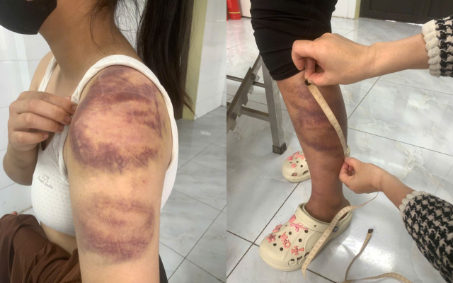 Những vết bầm tím trên cơ thể cháu T. do bị bố đẻ đánh