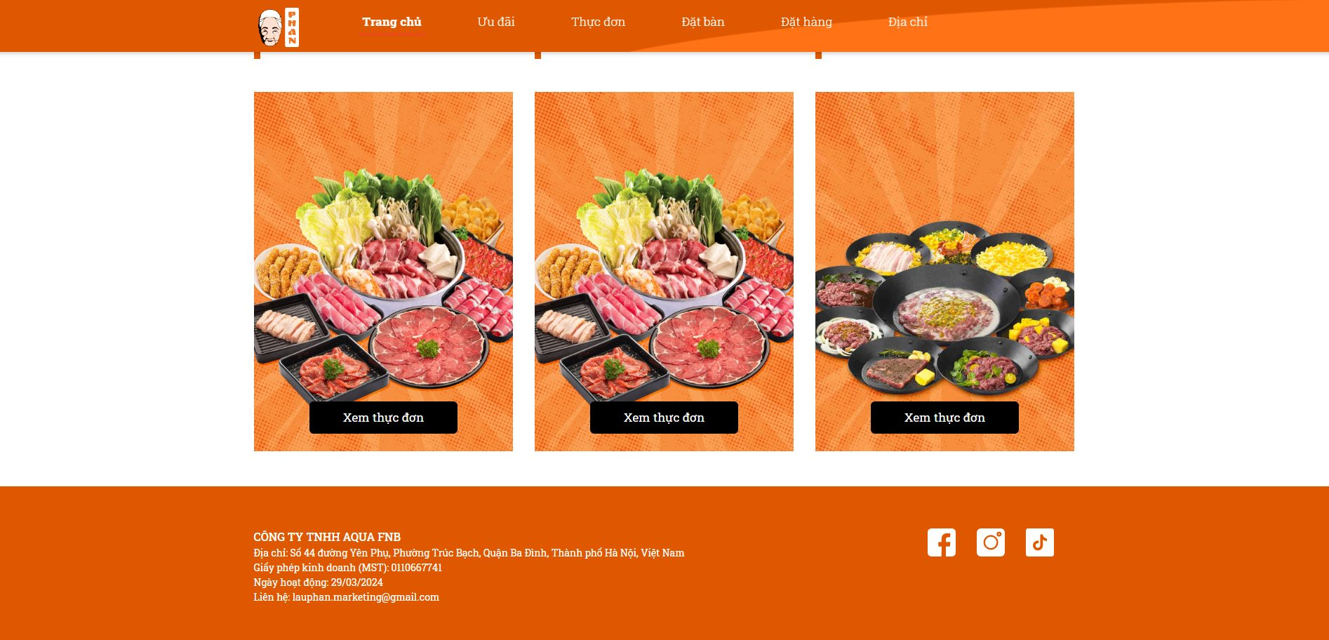 Email của doanh nghiệp có tên miền là lauphan.com. Đây là website của thương hiệu Lẩu Phan, hiện tại có 3 cơ sở tại Hà Nội. Đơn vị này tự giới thiệu là thương hiệu buffet bò Úc đi đầu cũng như lớn mạnh nhất Hà Nội.