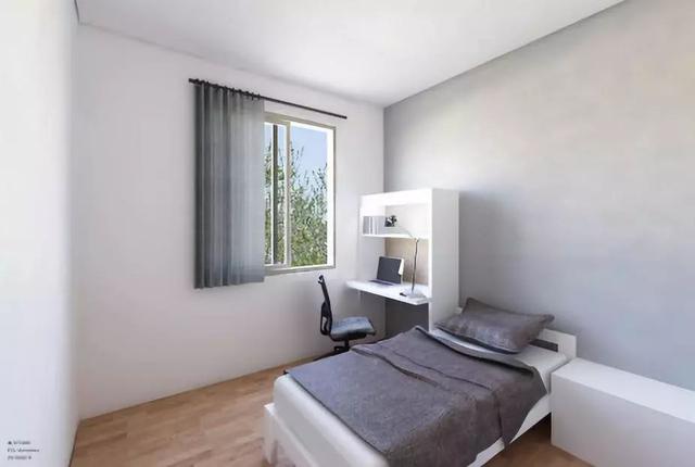 Khu phòng đơn theo phong cách tối giản Nhật Bản với tông trắng – xám và sàn gỗ sáng màu, đầy đủ điều hòa, bàn ghế, tủ quần áo, tủ lạnh và mạng không dây dù diện tích không lớn. Trong khi đó, phòng đôi hướng tới những sinh viên muốn cân bằng giữa riêng tư và giao tiếp, với nhiều lựa chọn bố trí nội thất theo sở thích cá nhân.