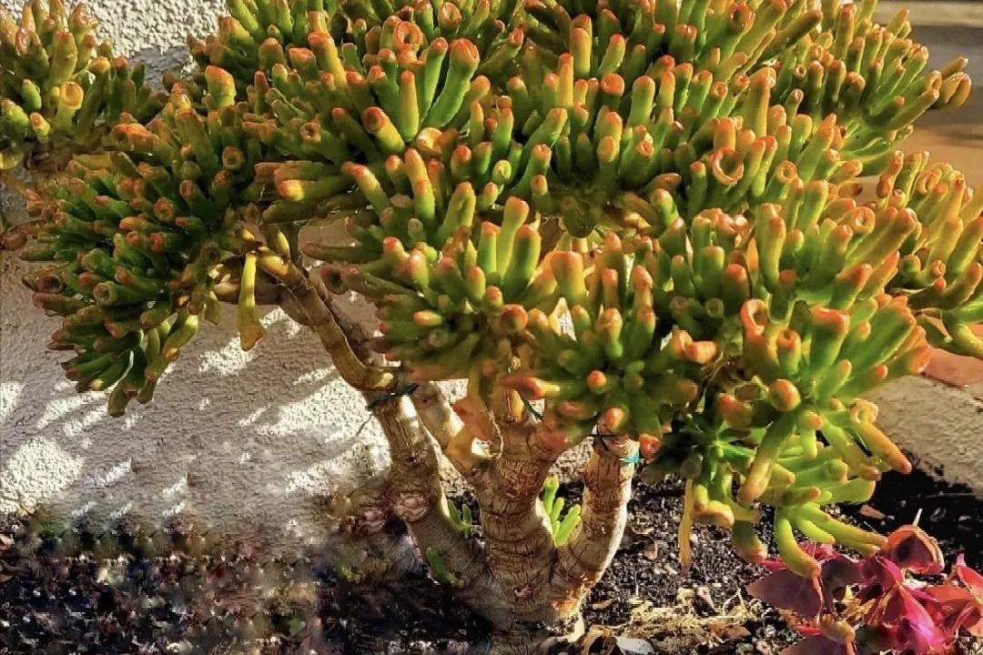 Cây tay Phật cầm vàng có hình dáng khá đặc biệt với phần thân và lá dày, mọng nước, mọc thành từng nhánh giống bàn tay đang nâng vật gì đó. Chính vì hình dáng này mà cây được đặt tên mang ý nghĩa may mắn. Tuy nhiên, nếu so với những loại cây cảnh mềm mại, cây tay Phật cầm vàng không phải lựa chọn phổ biến vì vẻ ngoài có phần thô và hơi “lạ mắt”. Dù vậy, khi cây phát triển ổn định, tổng thể lại khá hài hòa và dễ tạo điểm nhấn cho không gian. Đây là loại cây dễ trồng, có khả năng chịu hạn tốt và không cần chăm sóc thường xuyên. Cây thích hợp đặt ở ban công, bệ cửa sổ hoặc góc phòng có ánh sáng nhẹ. Khi tưới nước, chỉ cần giữ đất hơi khô, tránh tưới quá nhiều vì cây không chịu được úng. Vào mùa nắng nóng, nên đặt cây ở nơi thoáng mát để lá giữ được màu xanh khỏe.