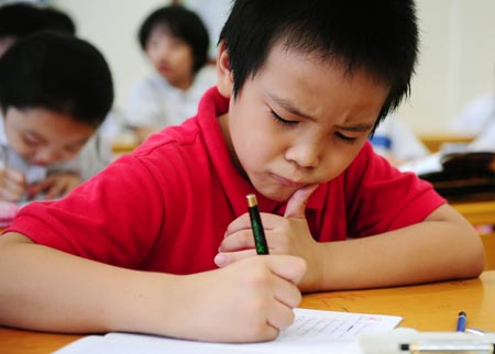 | Năm học này, nhiều phụ huynh phải nộp thêm khoản khá lớn để cho con học một số chương trình tiếng Anh nâng cao. Ảnh: Hoàng Hà. |
