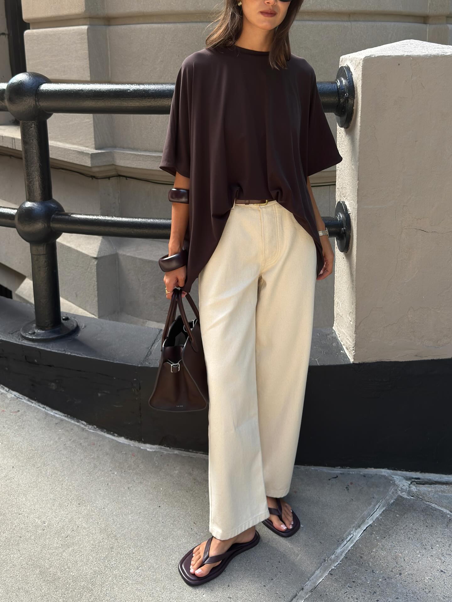 Các tông nâu phổ biến thường là nâu caramel, nâu da bò hoặc nâu chocolate. Những gam màu này đặc biệt dễ phối với bảng màu trung tính như trắng, be, kem hoặc xanh denim – vốn là những màu sắc quen thuộc trong phong cách của phụ nữ Pháp.