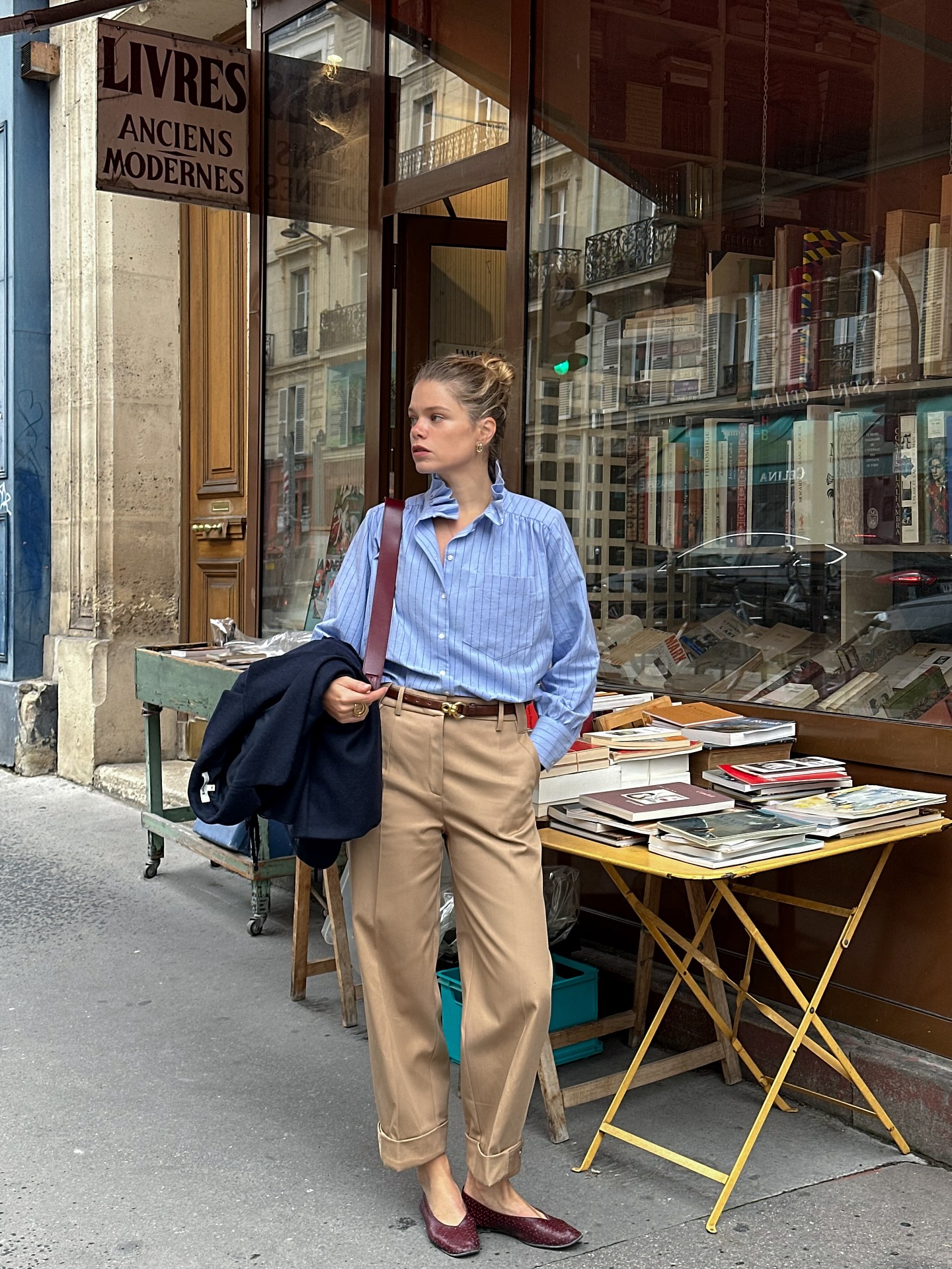 Loafer rất hợp với quần âu ống đứng, áo sơ mi, áo len mỏng hoặc blazer. Khi phối cùng tất mỏng màu trung tính, tổng thể trông vừa cổ điển vừa hiện đại. Phụ nữ Pháp thích loafer vì nó mang lại cảm giác tự tin, không quá mềm mại nhưng vẫn đủ tinh tế.