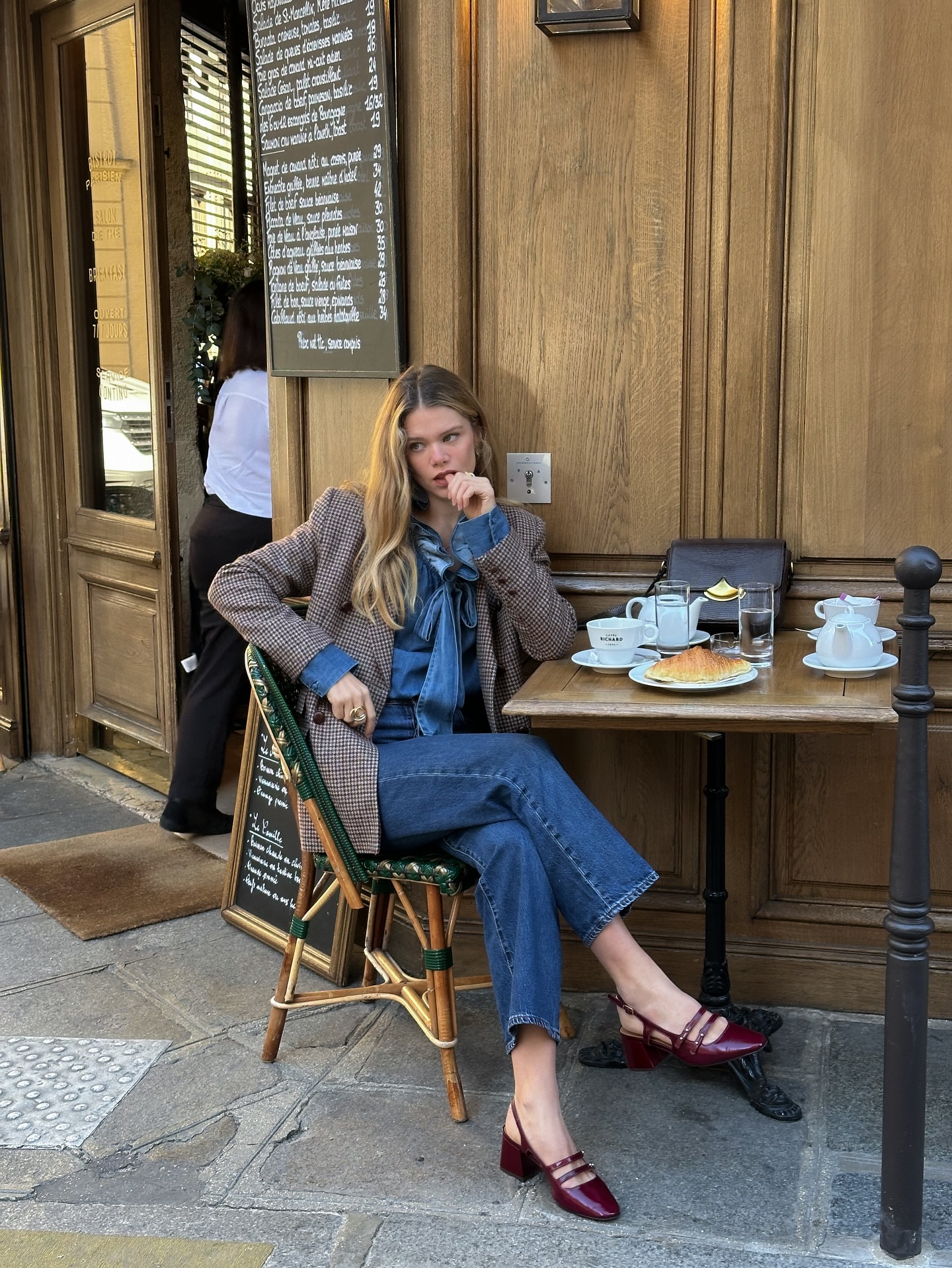 Phụ nữ Pháp thường chọn Mary Jane gót thấp hoặc gót vuông vừa phải, màu đen hoặc đỏ rượu vang. Họ kết hợp giày Mary Jane với váy ngắn, váy midi hoặc quần ống đứng để tạo nên vẻ ngoài vừa hoài cổ vừa hiện đại. Điểm hay của Mary Jane là khả năng cân bằng giữa sự dịu dàng và cá tính, rất phù hợp với tinh thần thời trang Pháp.